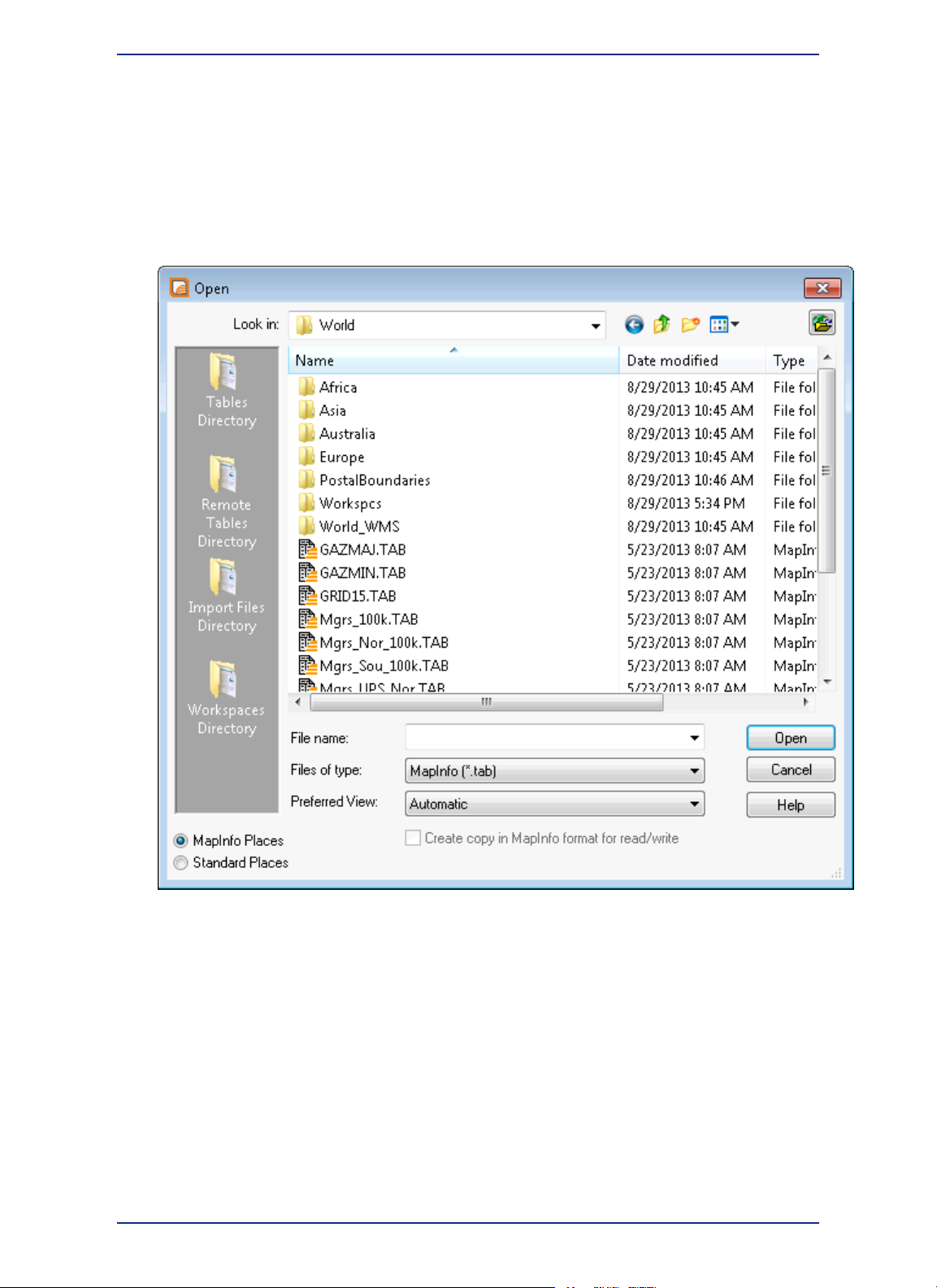 in your previous MapInfo Professional session or how you have set preferences for MAPINFO.WOR.
