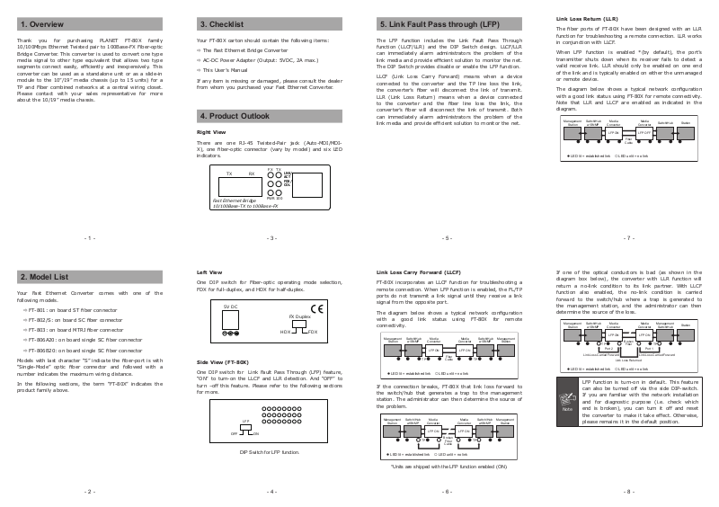 One Fiber-optic, 1310nm wavelength (except: FT-806A/