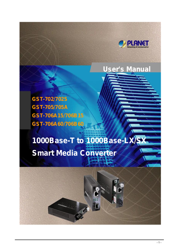 Thank you for purchasing PLANET 1000Base-T to 1000Base-LX/SX Smart Media Converter, the 1000Base-T to