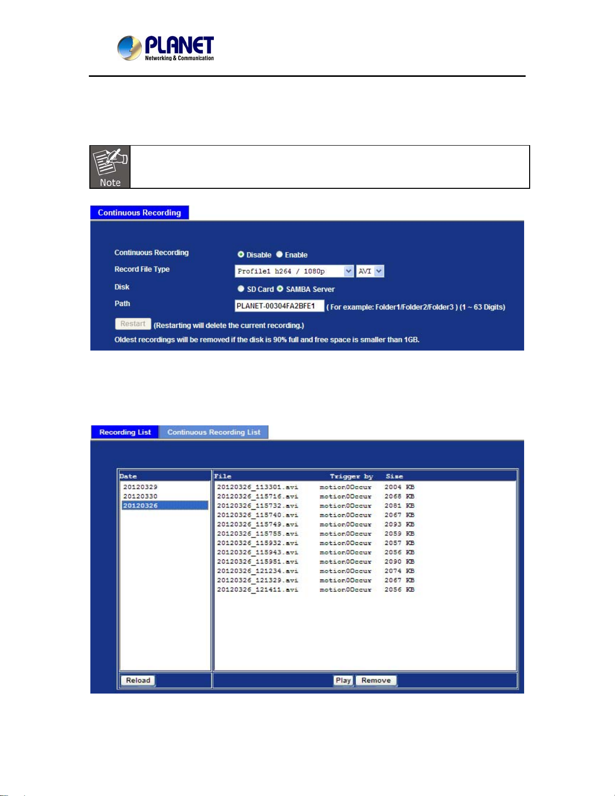 Windows Media Player 11.0 or later to play the AVI filed recorded by