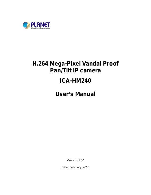 User’s Manual for PLANET H.264 Mega-Pixel Vandal Proof Pan/Tilt IP camera
