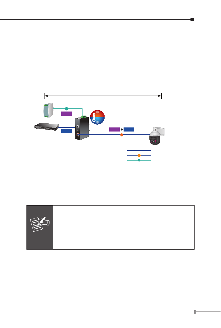 UTP cable to the IPOE-E172 and the “POE-in-Use” LED of IPOE171-60W and “PWR” LED of IPOE-E172 will light up continuously.