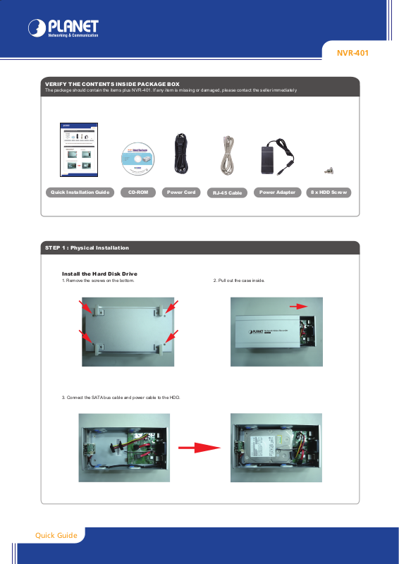 The package should contain the items plus NVR-401. If any item is missing or damaged, please contact the seller immediately