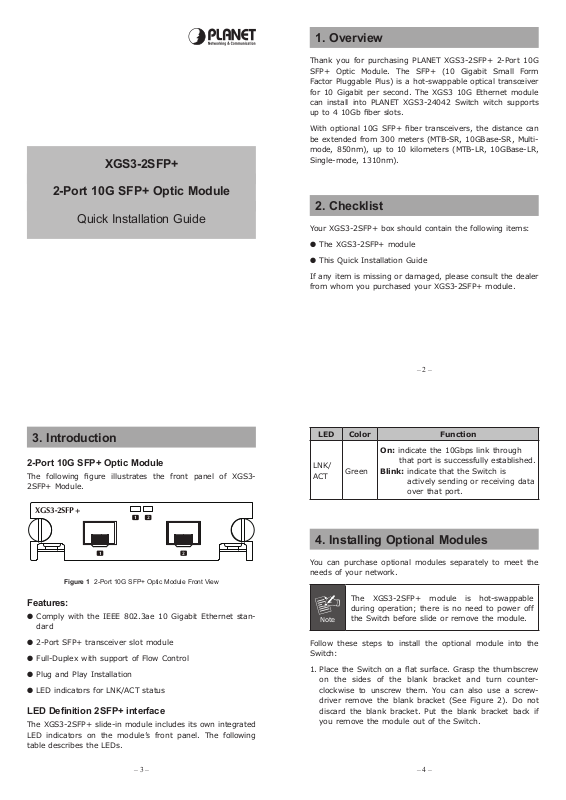 Thank you for purchasing PLANET XGS3-2SFP+ 2-Port 10G