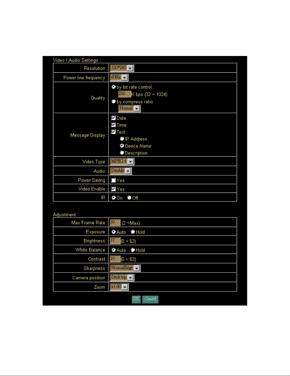 640*480, 320*240, 162*120