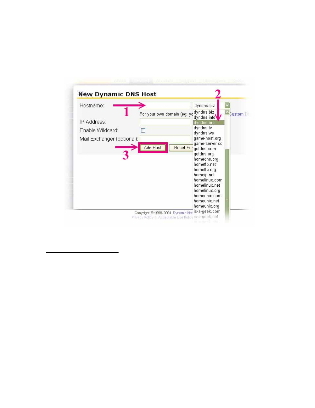 (1). Visit the following web site: http://www.dyndns.org/ (Pink No.1)
