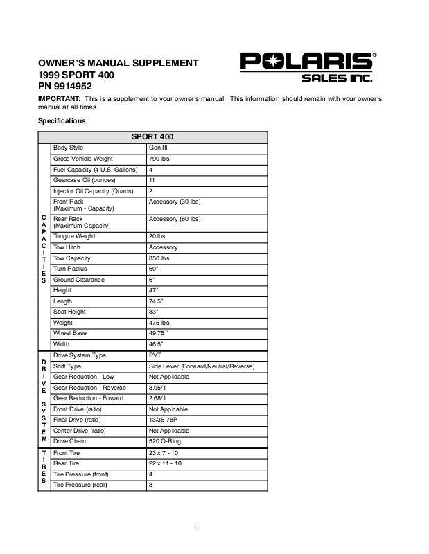 the lever is released. This vehicle is equipped with a Polaris Electronic Throttle