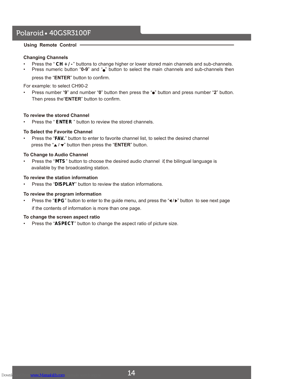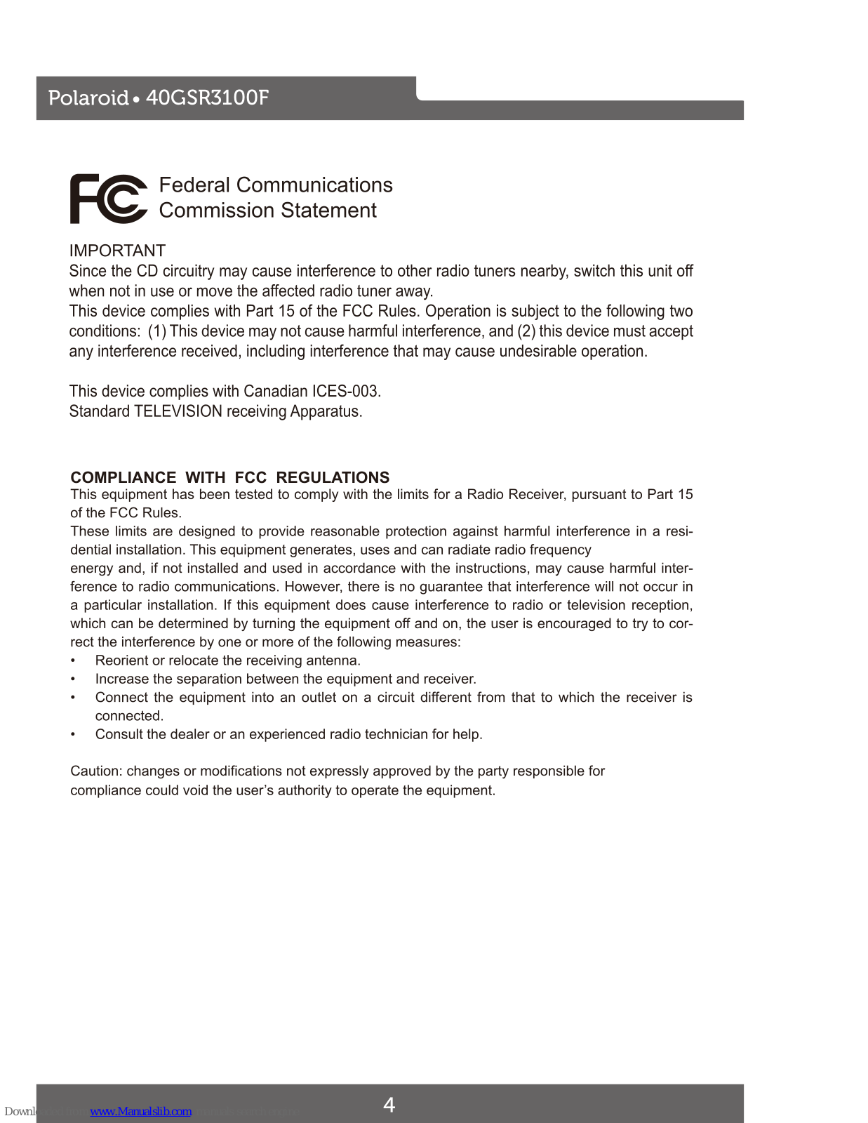 Polaroid 40GSR3100F User Manual