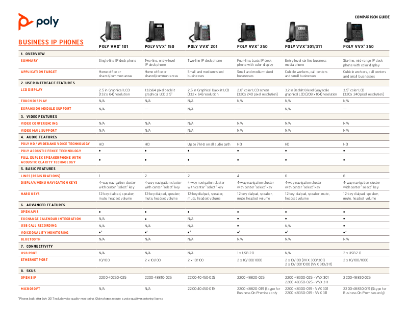PO LY V VX® 101 PO LY V VX® 150 PO LY V VX® 201 PO LY V VX® 250 POLY VVX®301/311 PO LY V VX® 350