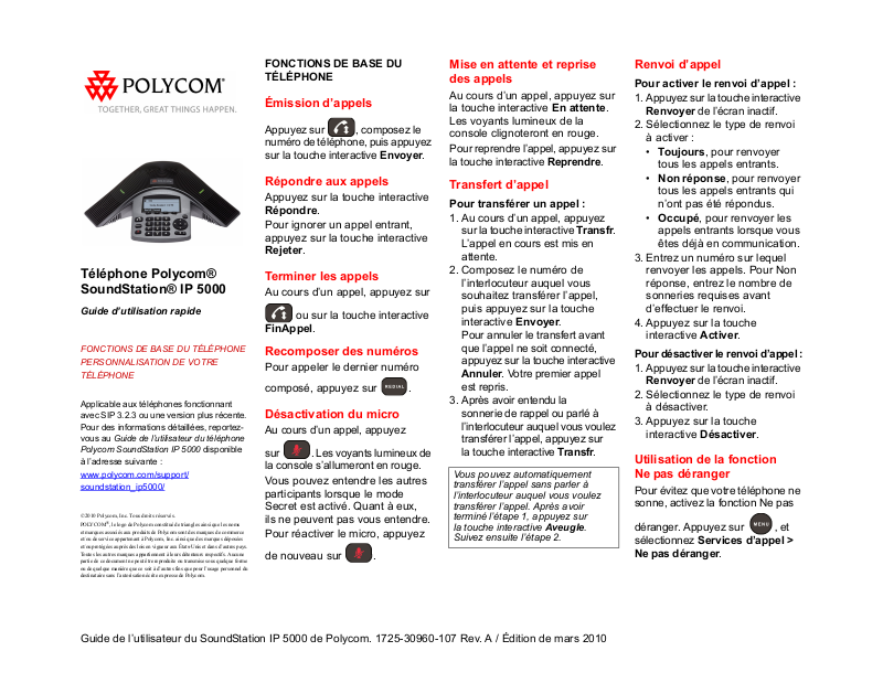 et/ou de service appartenant à Polycom, Inc. ainsi que des marques déposées