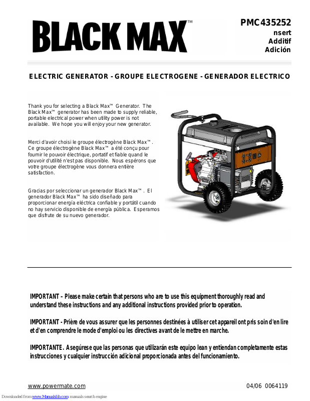Thank you for selecting a Black Max™ Generator. The