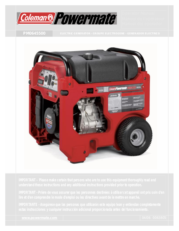 Thank you for selecting a Coleman® Powermate® Generator. The Coleman®