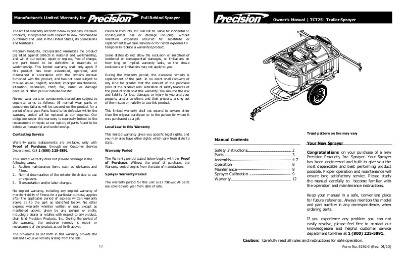 Manufacture’s Limited Warranty for Pull Behind Sprayer