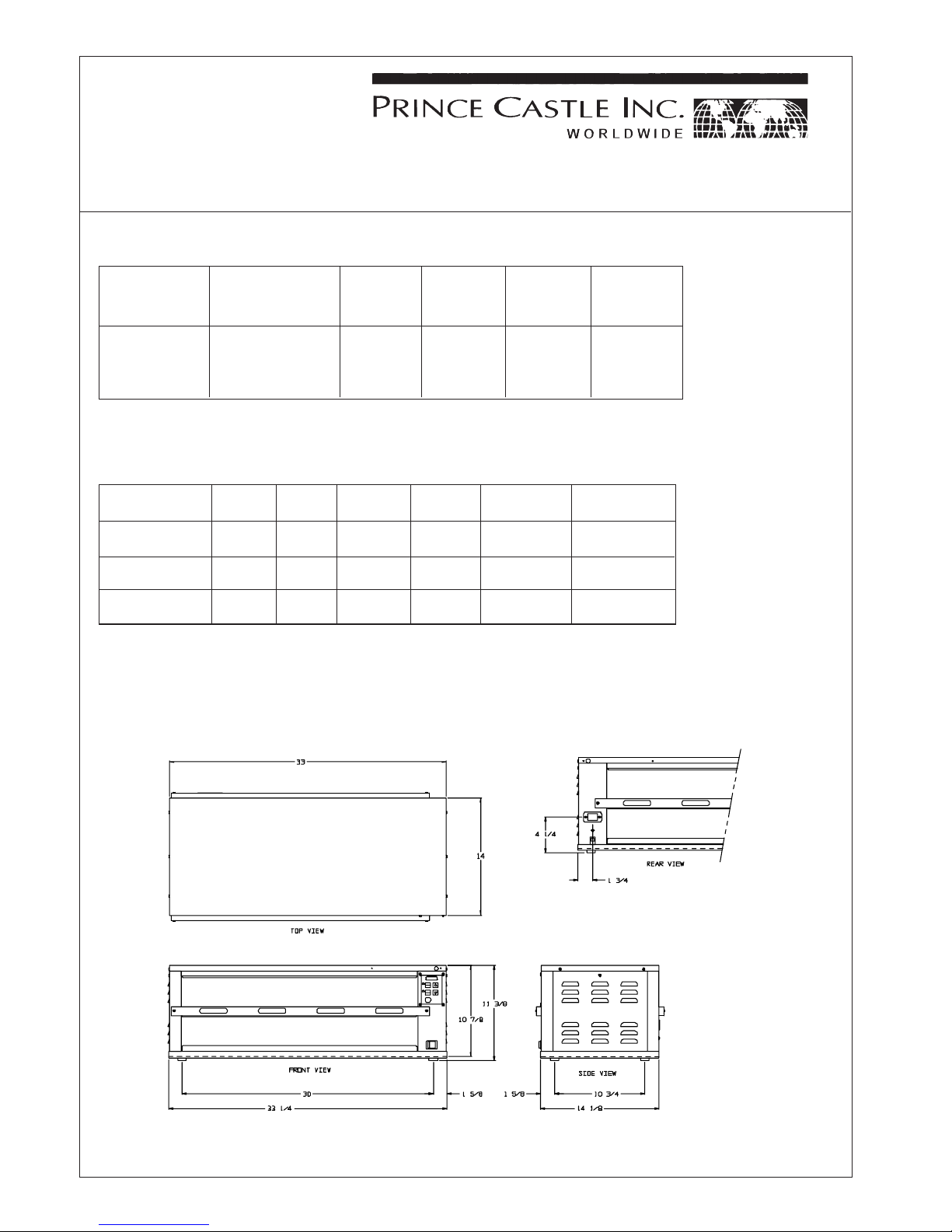 MODEL DESCRIPTION WIDTH DEPTH HEIGHT WT L B.