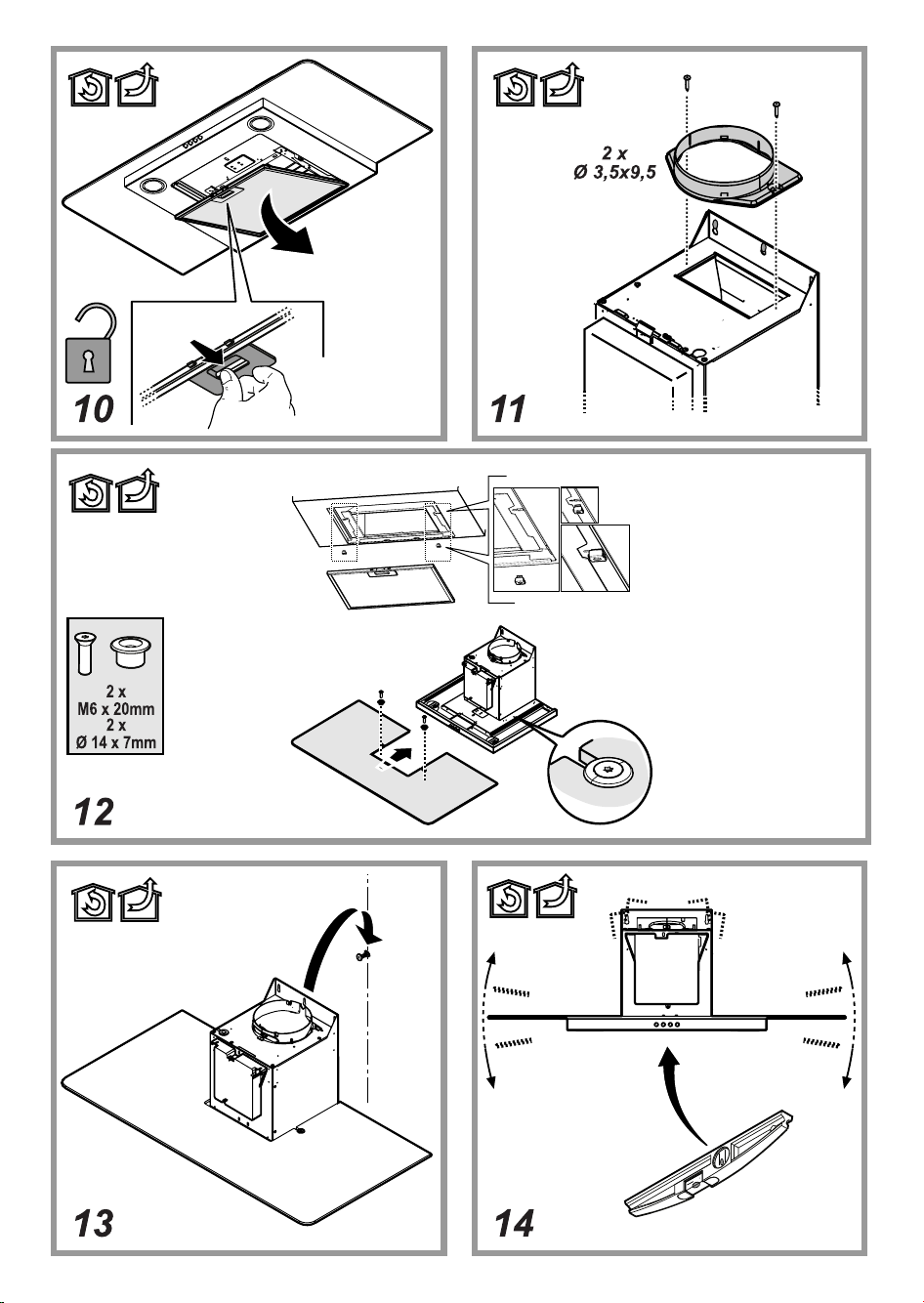 •Ne pas utiliser ni laisser la hotte sans ses ampoules correctement montées - risque de choc électrique.
