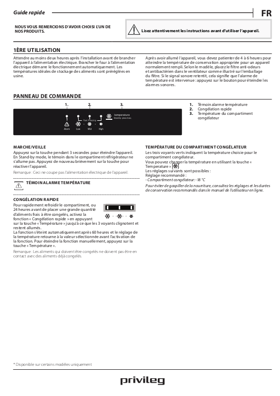 Remarque: Les aliments qui doivent être congelés ne doivent pas être en