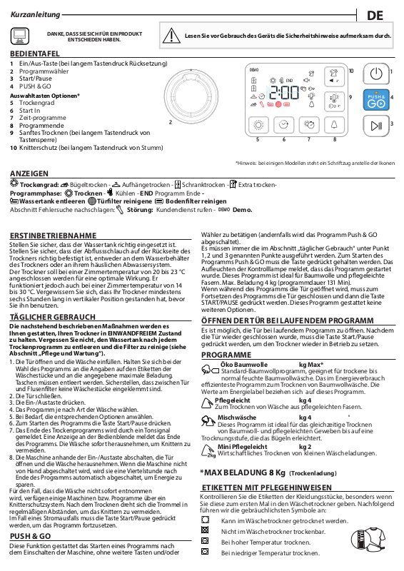 Der Wäschetrockner be ndet sich in Modalität