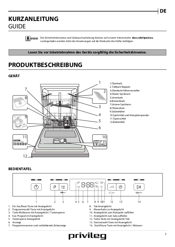 Die Sicherheitshinweise und Gebrauchsanleitung können auf unserer Internetseite docs.whirlpool.eu