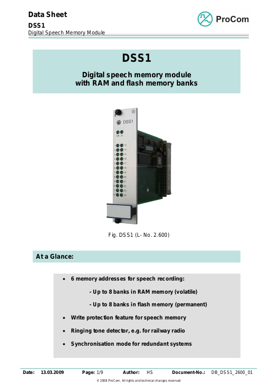 DSS1 module can be used as speech memory in all DVS-21 applications in