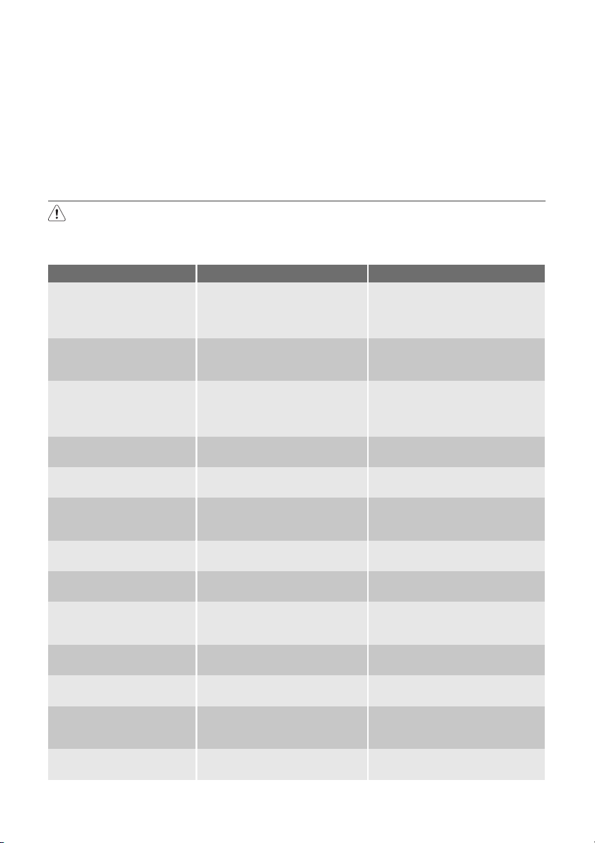 • Verwenden Sie keine anderen Elektrogeräte (wie Speiseeisbereiter) in Kühlgeräten, wenn solche Geräte nicht ausdrücklich vom Hersteller für diesen Zweck zugelassen sind.