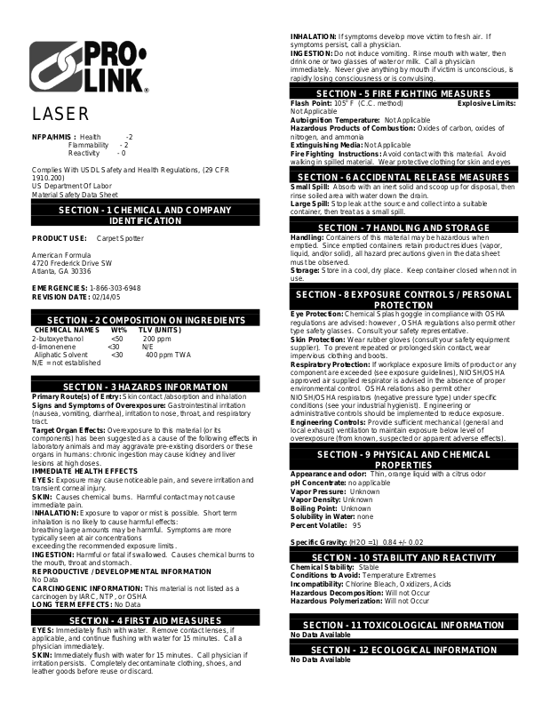Appearance and odor: Thin, orange liquid with a citrus odor