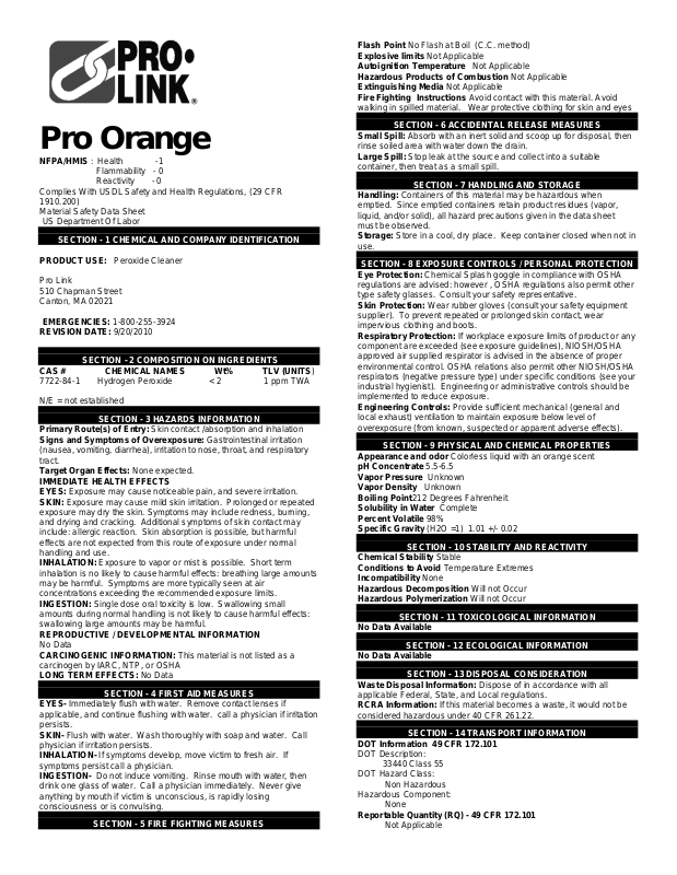 7722-84-1 Hydrogen Peroxide < 2 1 ppm TWA