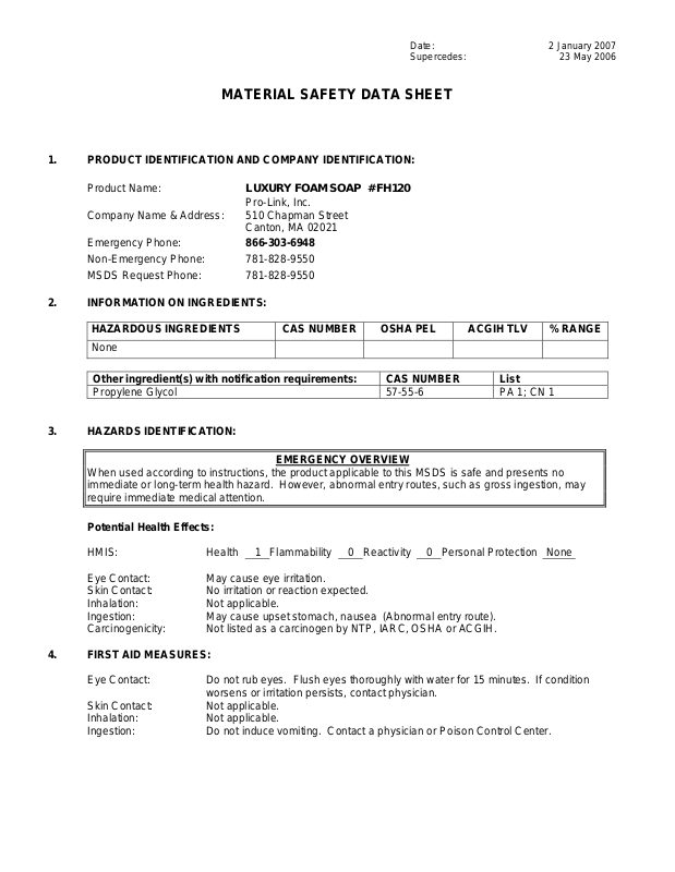 LUXURY FOAM SOAP # FH120 Page 2 of 2