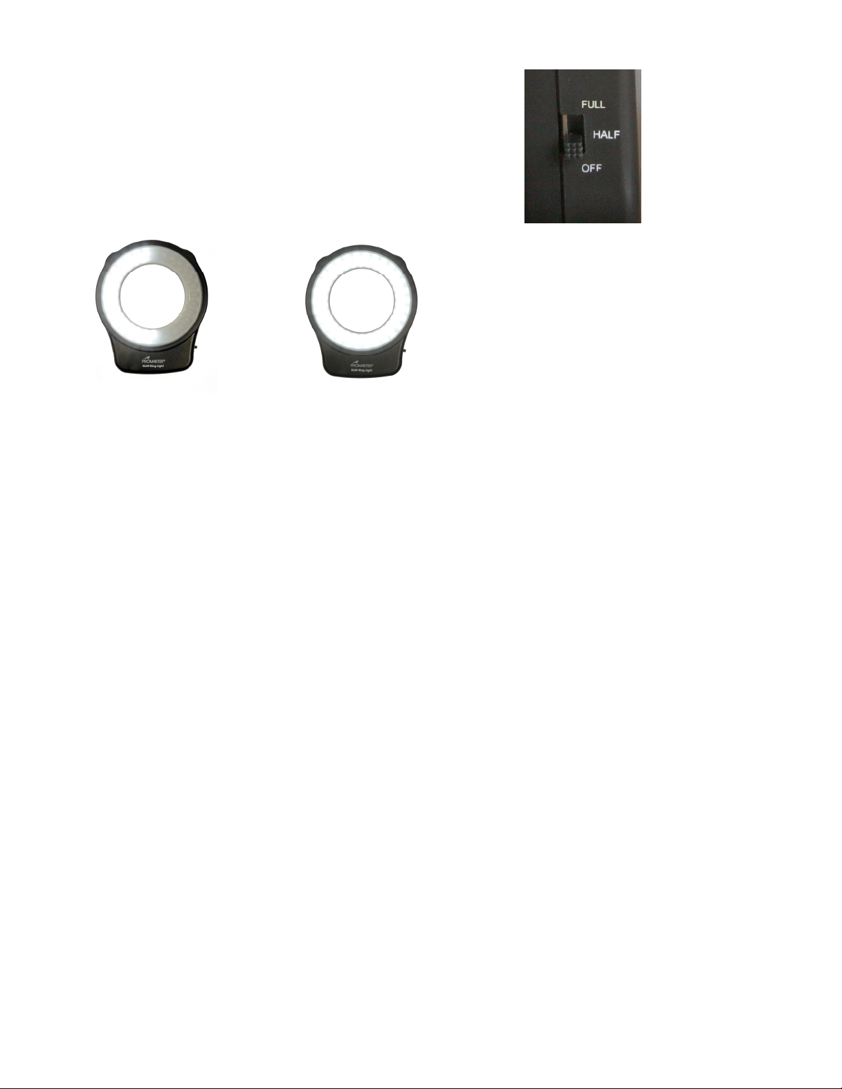 The RL60 LED Macro Ring Light has a two stage power switch which allows