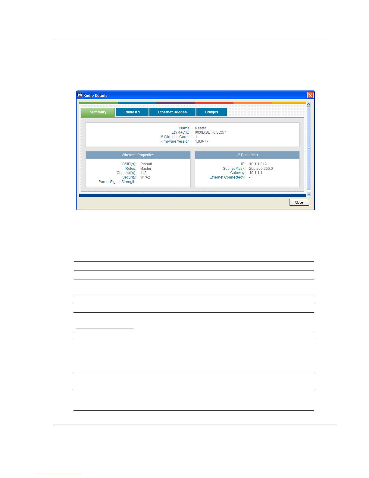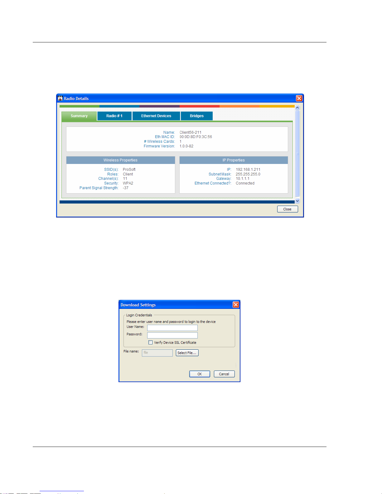address, SSID and security for that wireless link. Double clicking on a radio in the