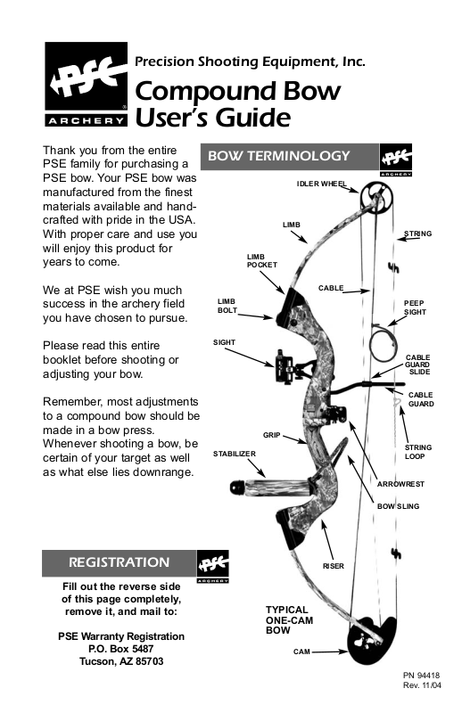 to maintain PSE warranty coverage. Total arrow weight must be in accordance with the