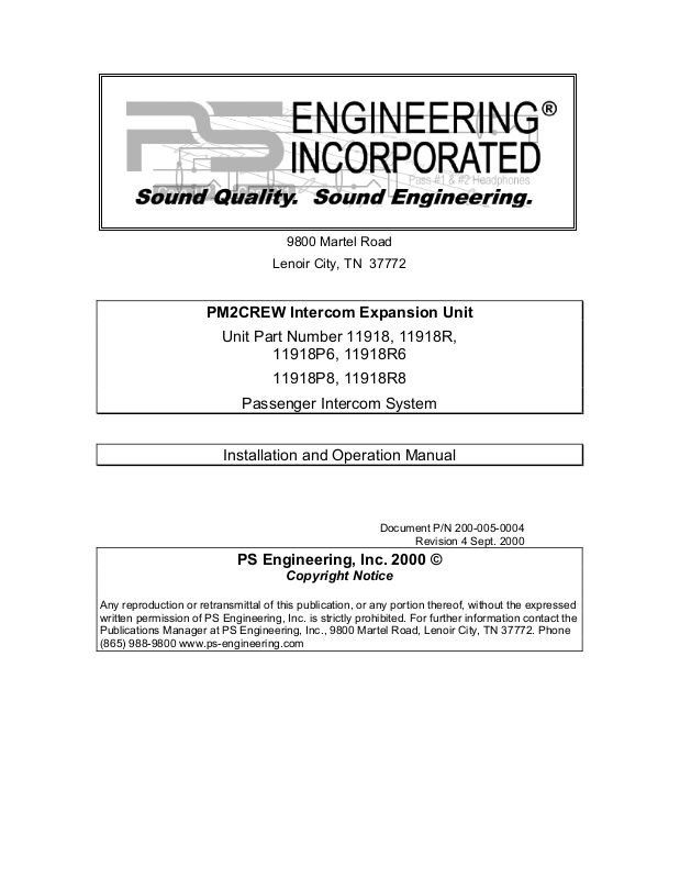 written permission of PS Engineering, Inc. is strictly prohibited. For further information contact the