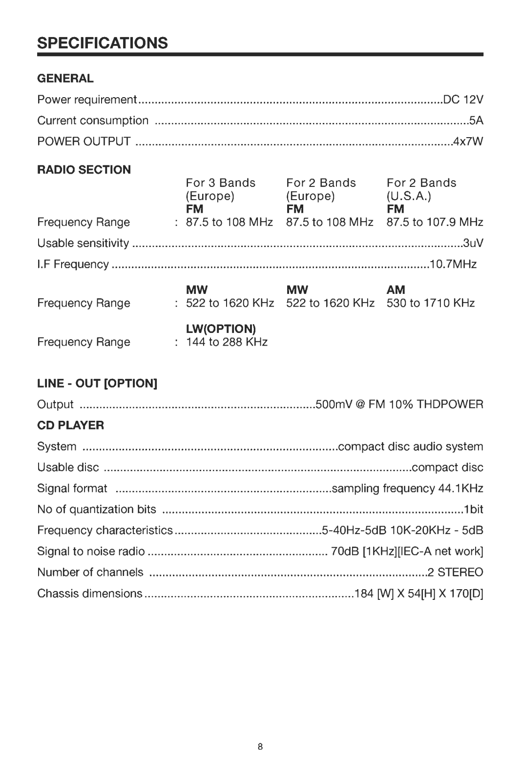 Specifications and Main Features