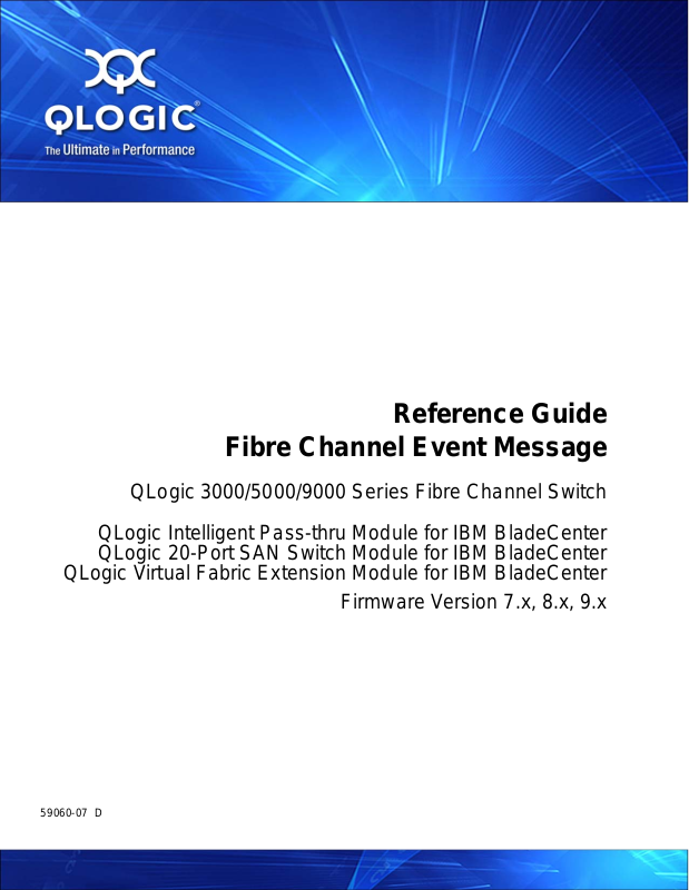 This manual describes the alarm messages for QLogic Fibre Channel switches.