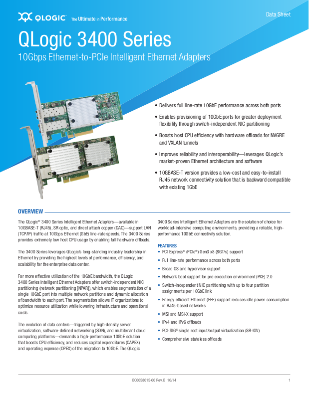 The QLogic® 3400 Series Intelligent Ethernet Adapters—available in