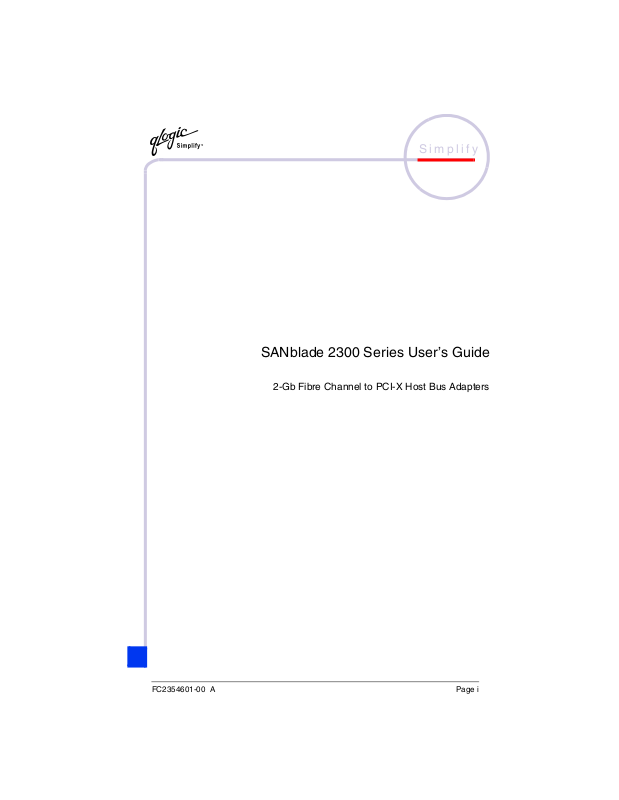 This part of the SANblade 2300 User’s Guide describes the host bus adapters