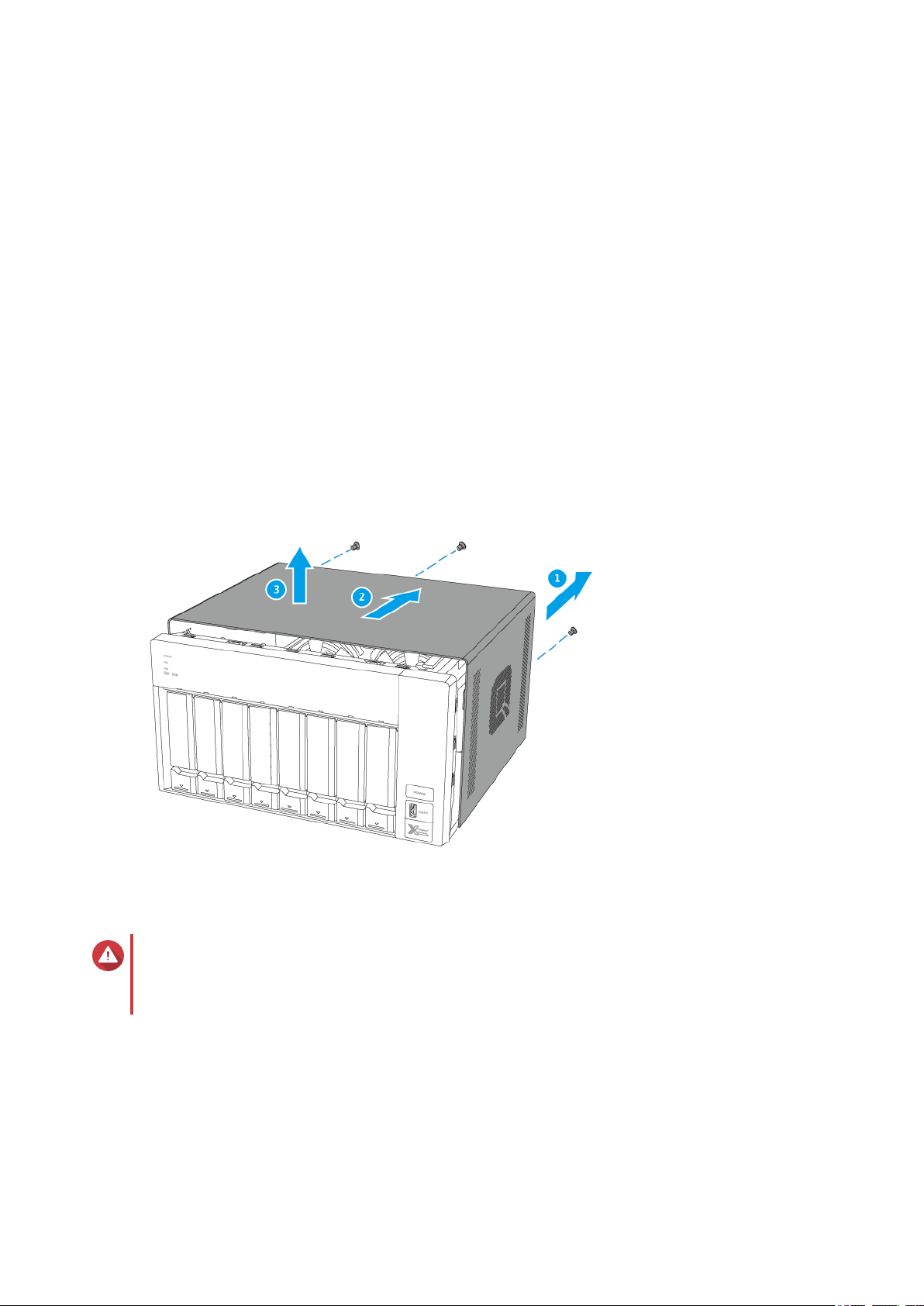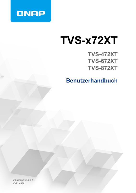 Diese Bedienungsanleitung enthält Informationen zum QNAP TVS-x72XT NAS und Schritt-für-SchrittAnleitungen zur Hardwareinstallation sowie Anleitungen zur grundlegenden Bedienung und Fehlerbehebung.
