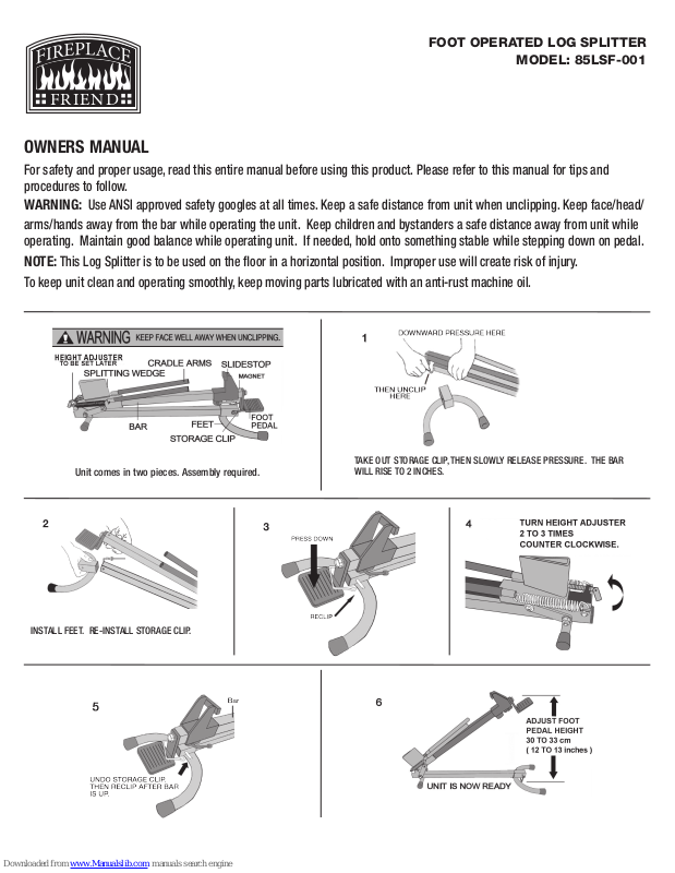 This Log Splitter is to be used on the floor in a horizontal position. Improper use will create risk of injury.