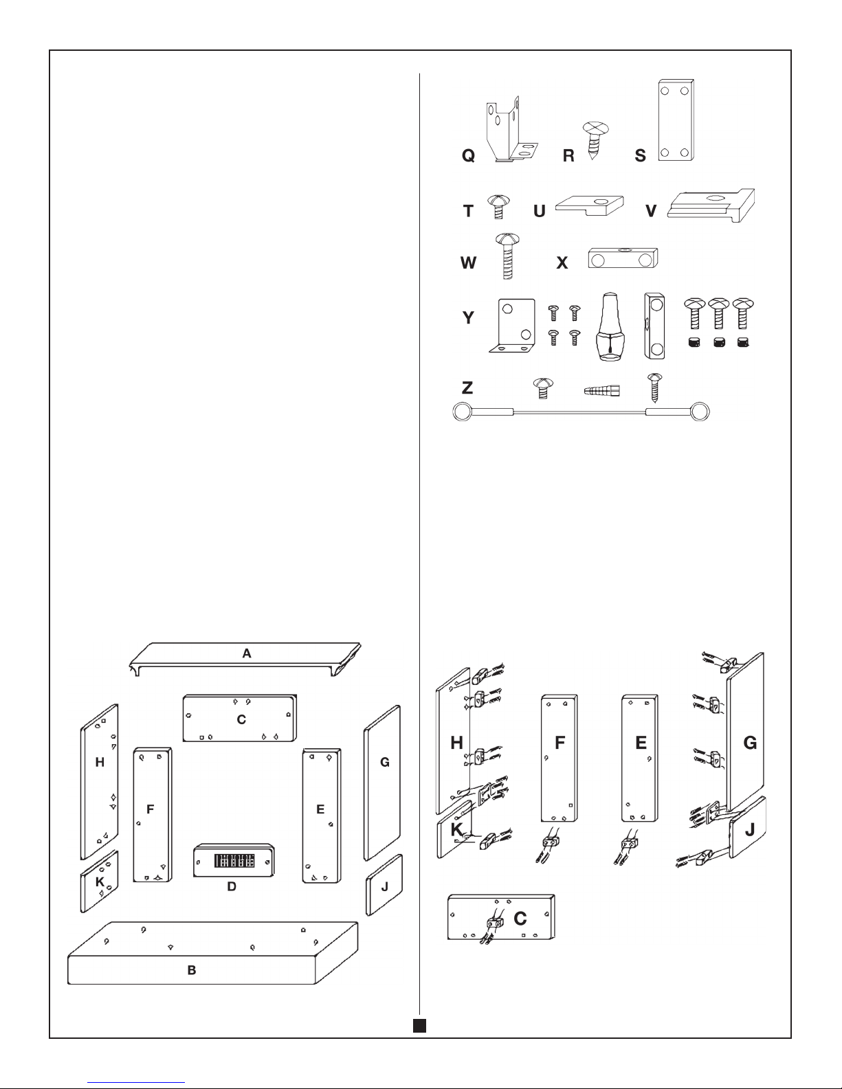 together with 4-hole wood connector [ S] and 4 KD screws. Attach Panels G and