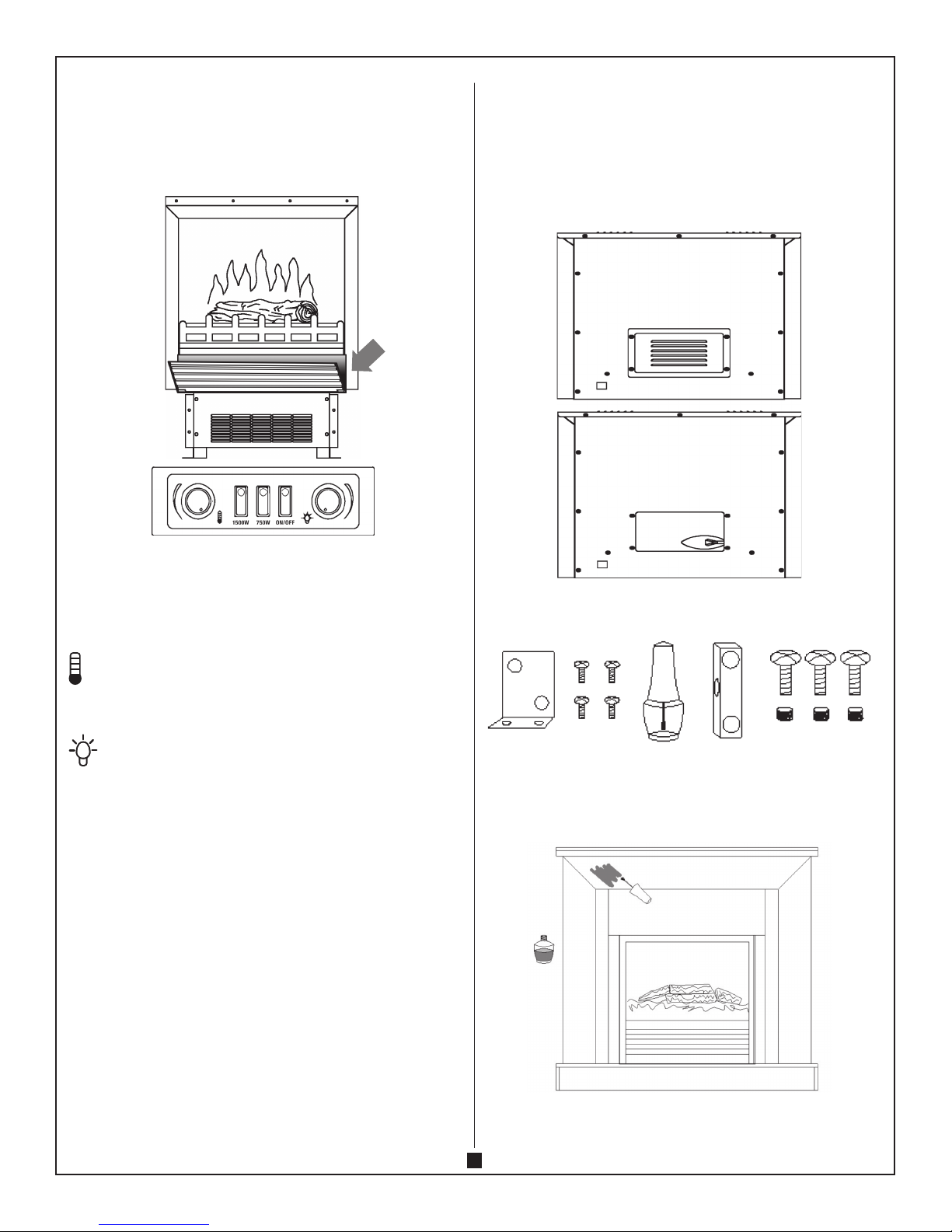NOTE : Light bulbs may become loose during shipping. If the flame effect is dim or does