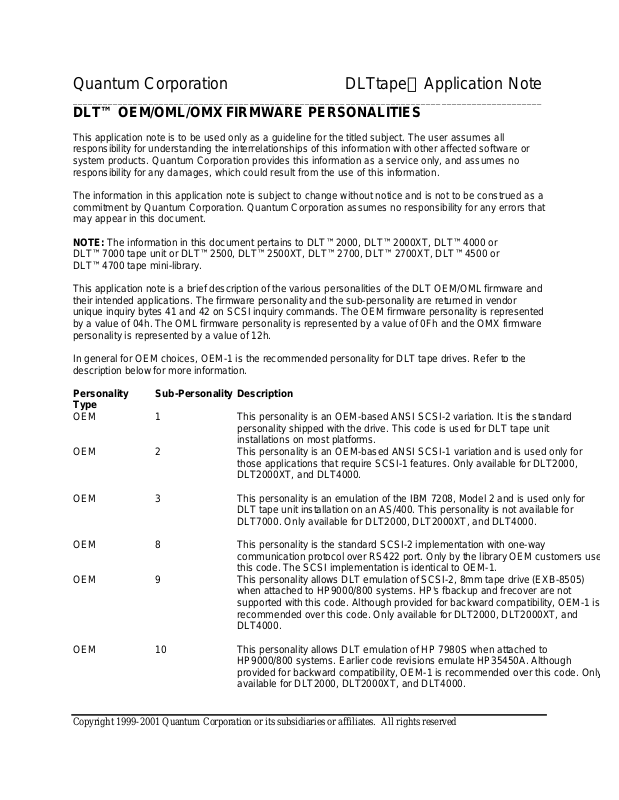 This application note is a brief description of the various personalities of the DLT OEM/OML firmware and
