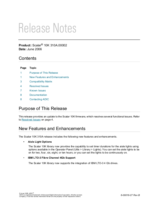 This release provides an update to the Scalar 10K firmware, which resolves several functional issues. Refer
