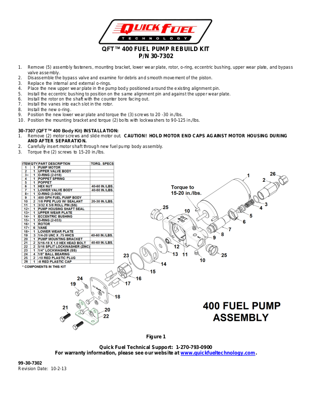 30-7307 (QFT™ 400 Body Kit) INSTALLATION: