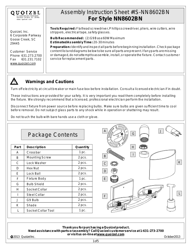 Needassistancewithpartsorassembly?CallQuoizelcustomerserviceat1-631-273-2700
