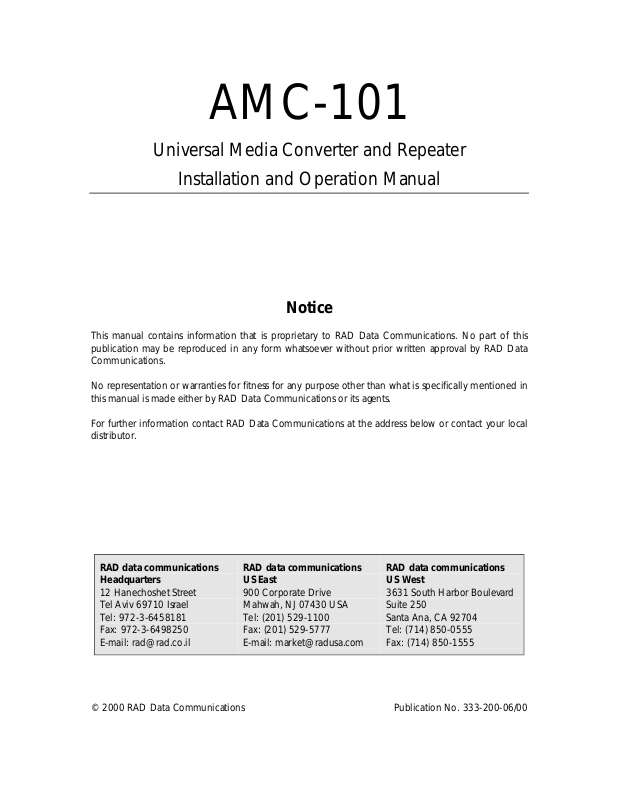© 2000 RAD Data Communications  Publication No. 333-200-06/00