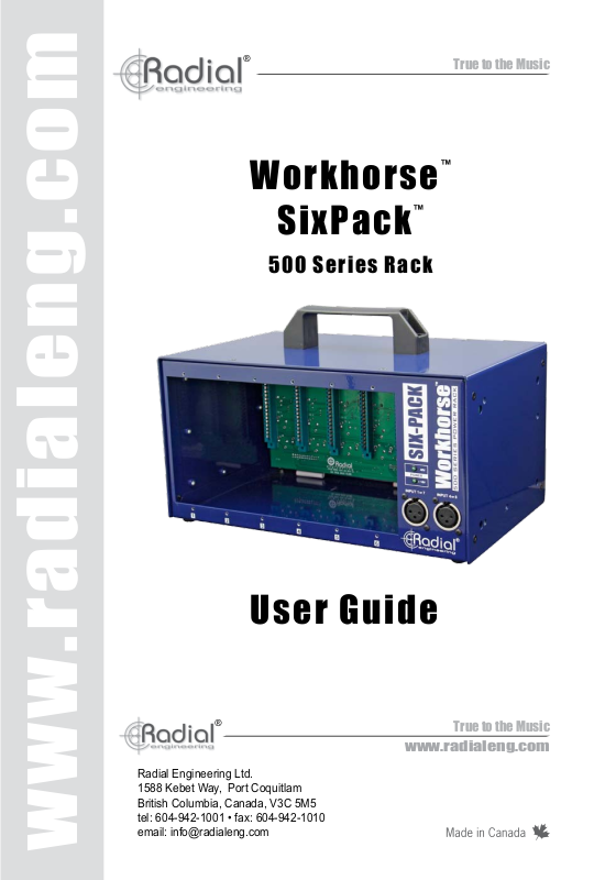 Congratulations and thank you for purchasing the Radial Workhorse SixPack, an innovative