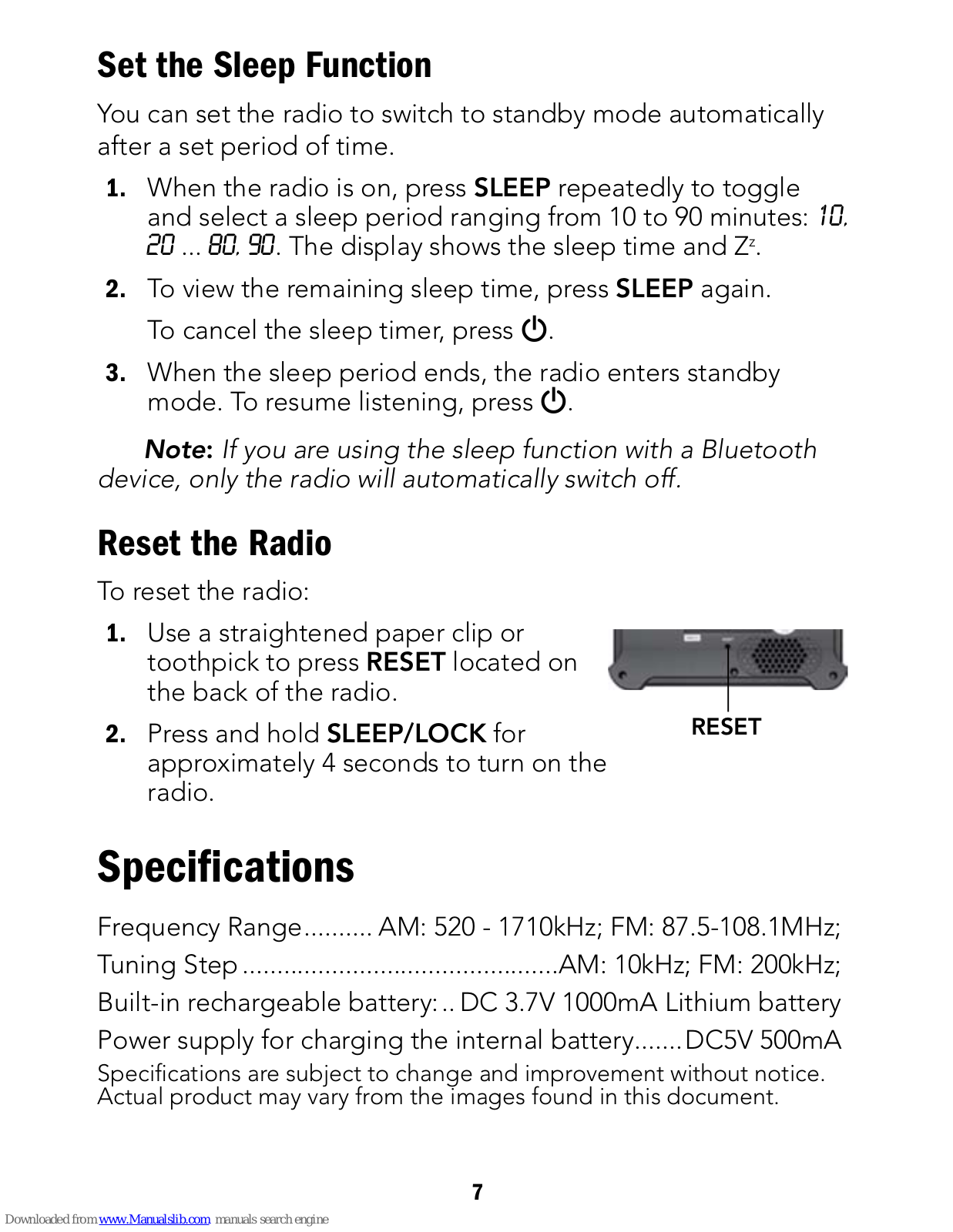 Specifications and Main Features