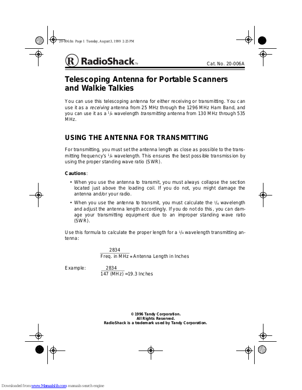 For transmitting, you must set the antenna length as close as possible to the transmitting frequency’s