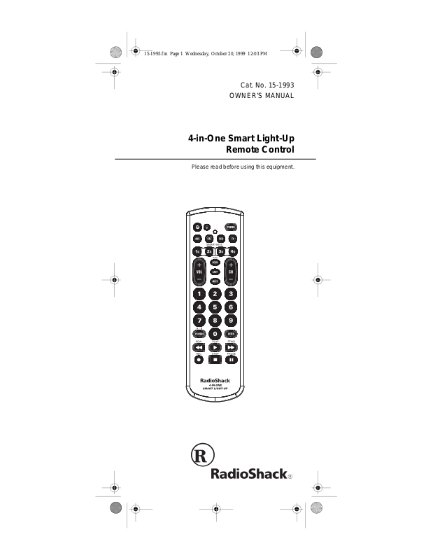 Your RadioShack 4-in-One Smart Light-Up Remote Control is a pre-programmed universal