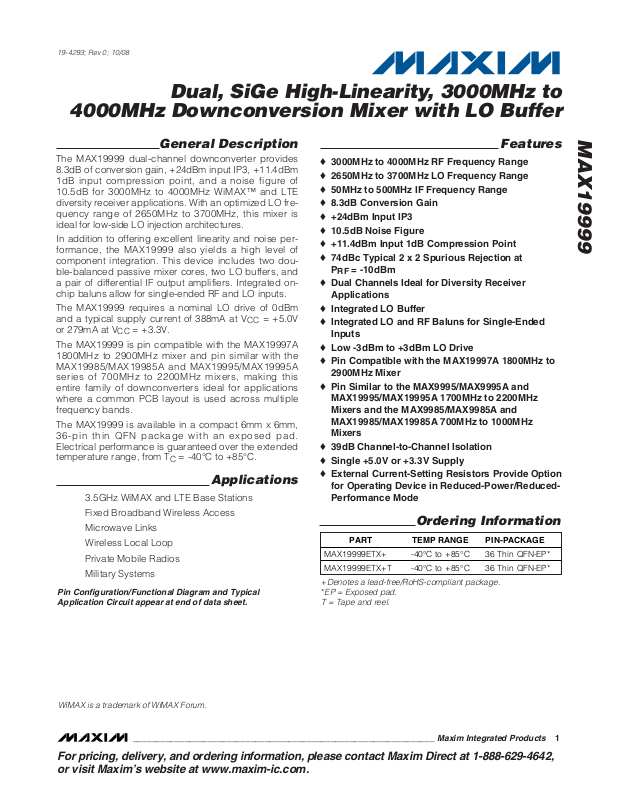 o Pin Compatible with the MAX19997A 1800MHz to
