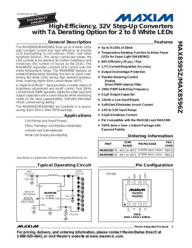 MAX8596Z make them ideally suited to drive up to 8